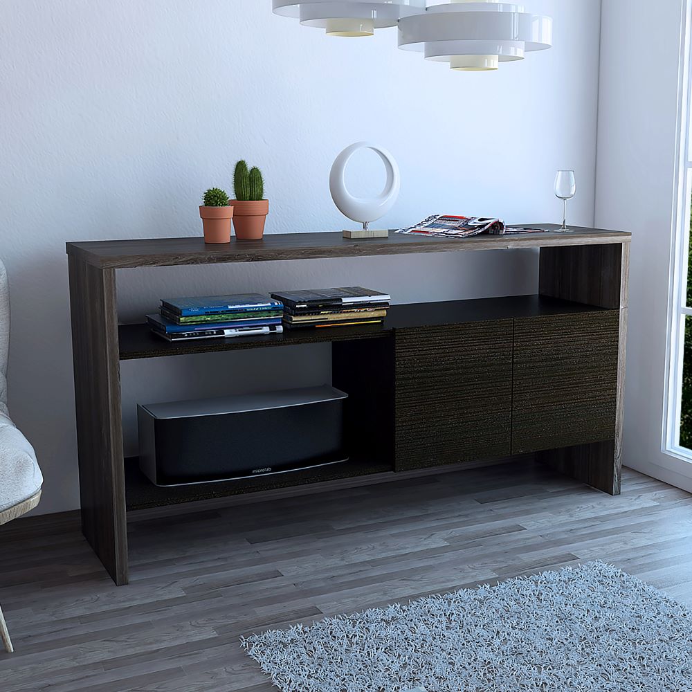 Optimiza tu espacio con este arrimo de diseño contemporáneo, ideal para organizar tus objetos de aseo y mantener todo en orden. Con 2 estantes amplios y 2 puertas, ofrece el equilibrio perfecto entre almacenamiento visible y discreto.