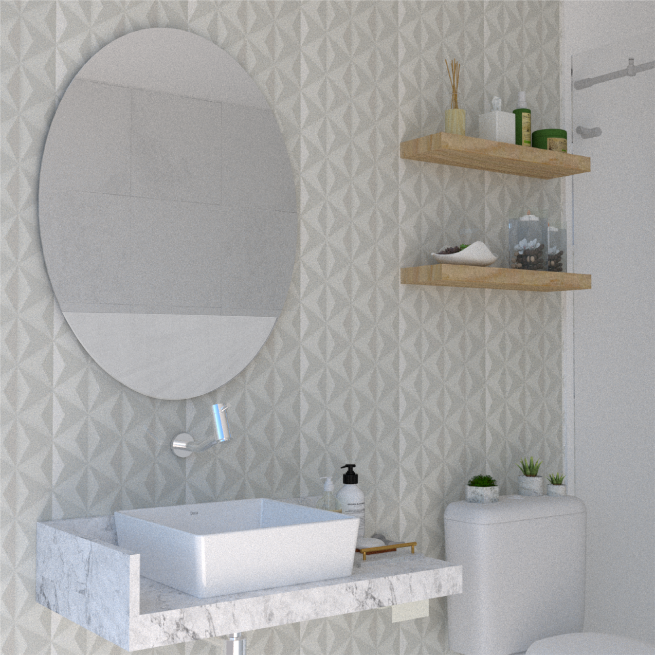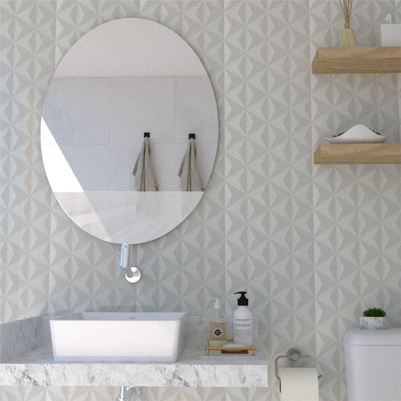 El Espejo Ferrara combina diseño moderno con funcionalidad práctica. Su forma ovalada sencilla aporta elegancia atemporal, mientras que su sistema de instalación flotante permite montarlo de manera rápida y sin complicaciones.