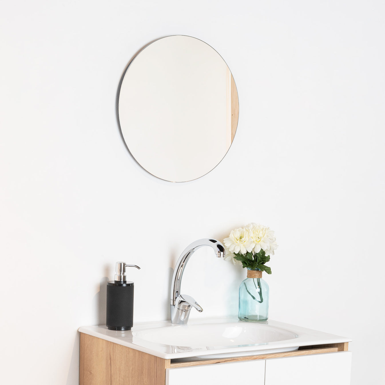 El Espejo Redondo D400 demuestra que la elegancia no necesita ocupar mucho espacio. Con sus 40x40 cm de diámetro, esta pieza circular se convierte en la solución perfecta para baños compactos, entradas estrechas o rincones que merecen un toque de sofisticación.