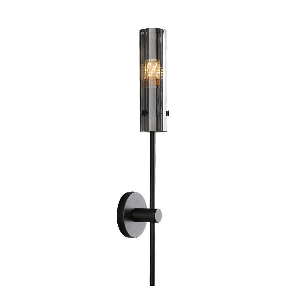 Aplique de aluminio negro y vidrio smoke, que entrega una iluminación simple y moderna.