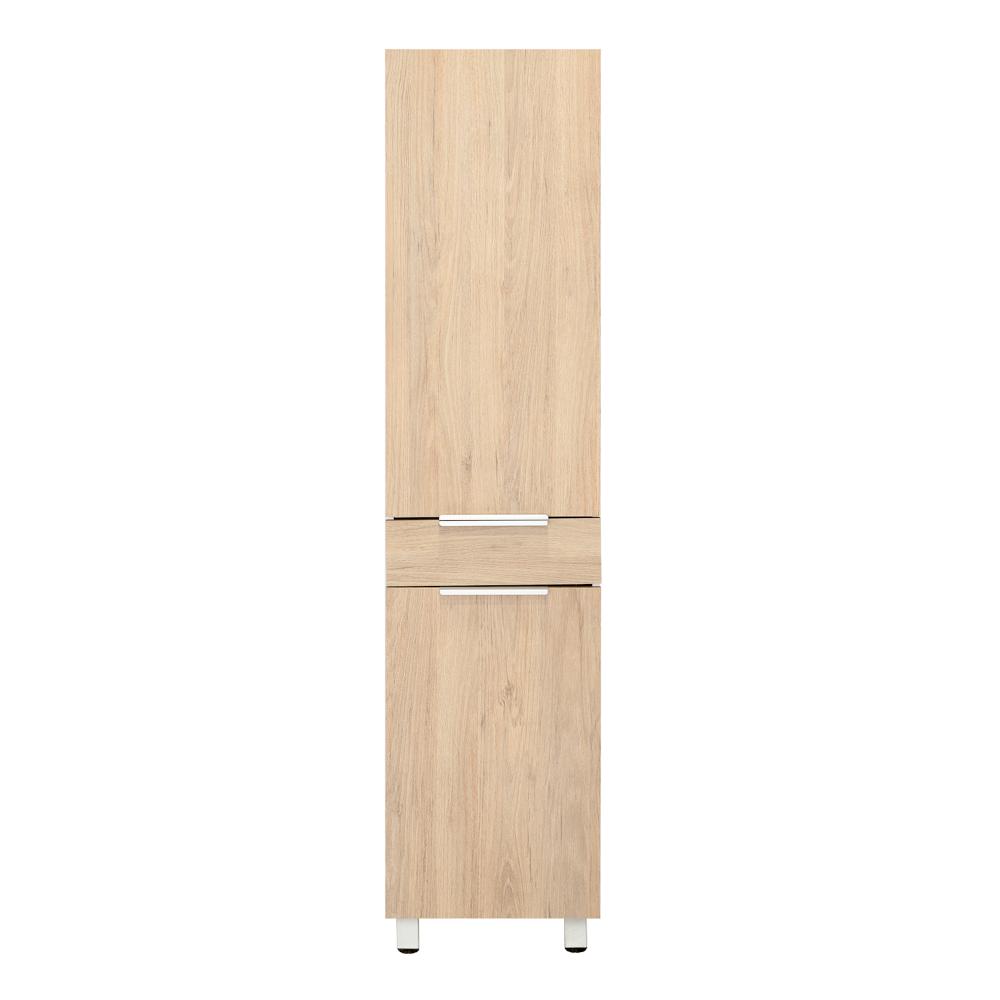 Organiza tu cocina sin complicaciones con esta alacena en tonos Blanco y Rovere, diseñada para simplificar tu día a día. Su puerta abatible revela amplios espacios interiores para guardar alimentos y utensilios, mientras que el cajón adicional ofrece almacenamiento extra para mantener todo a mano y en orden.