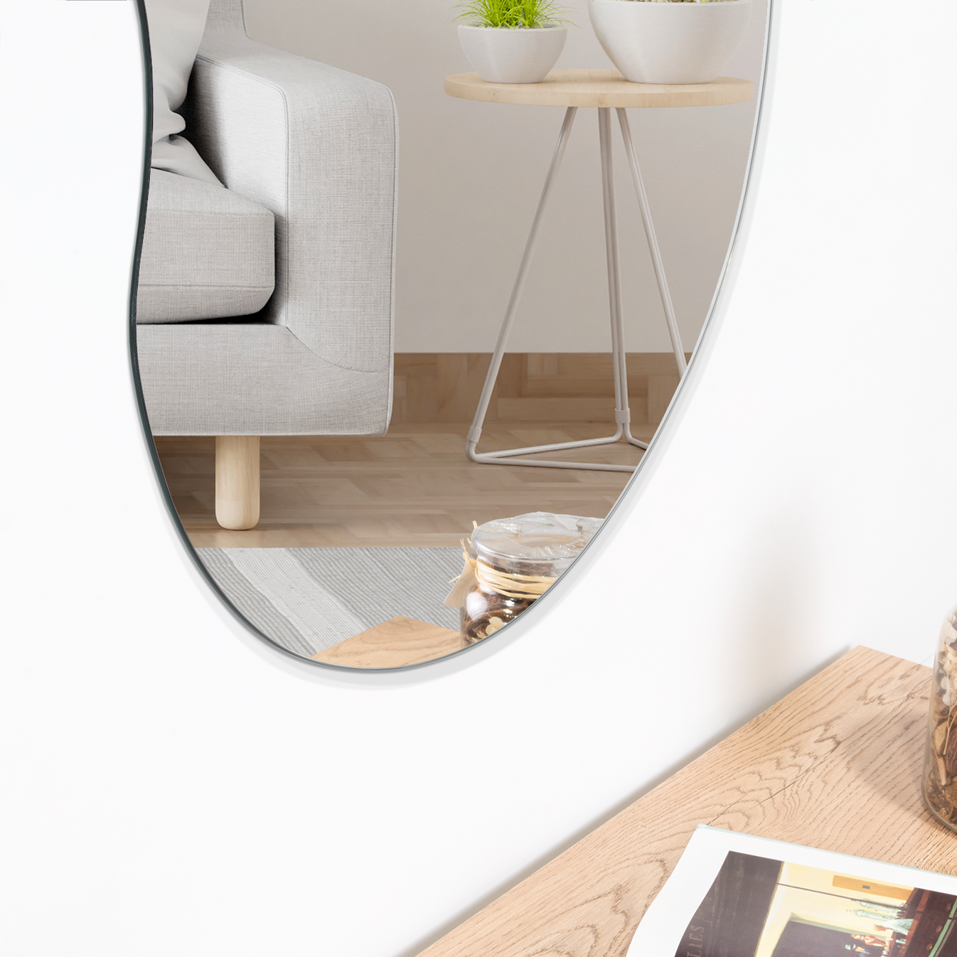 Sus líneas asimétricas y contornos orgánicos rompen la monotonía de las formas tradicionales, creando un punto focal escultórico que eleva instantáneamente la sofisticación de cualquier ambiente. Más que un espejo funcional, Belaterra es una pieza de arte contemporáneo que dialoga con tu espacio.