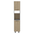 La alacena en tonos Gris y Rovere combina sobriedad y calidez natural, creando un punto focal elegante en tu cocina o comedor. Sus dos puertas batientes con manijas facilitan el acceso a una variedad de entrepaños internos, ofreciendo almacenamiento versátil para organizar desde vajilla hasta despensa.
