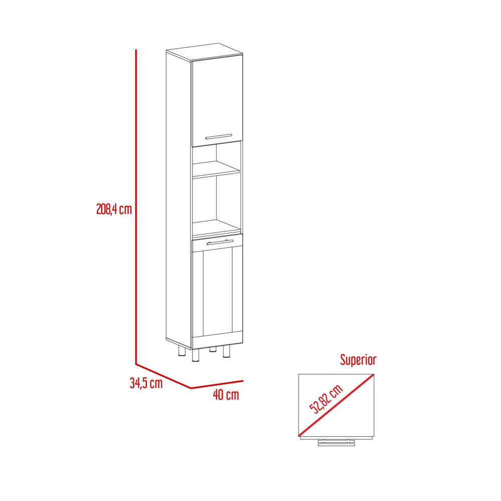 Elevada sobre patas de metal, esta alacena aporta un toque industrial-contemporáneo mientras facilita la limpieza del suelo. Fabricada en madera aglomerada MDP recubierta con láminas melamínicas de excelente calidad, garantiza resistencia y durabilidad frente al uso cotidiano.