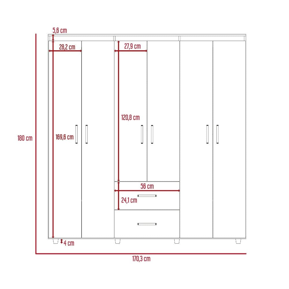 Este closet de 6 puertas abatibles transforma cualquier dormitorio en un espacio ordenado y funcional. Diseñado para maximizar el almacenamiento sin sacrificar estilo, ofrece compartimentos versátiles que se adaptan a tus necesidades.
