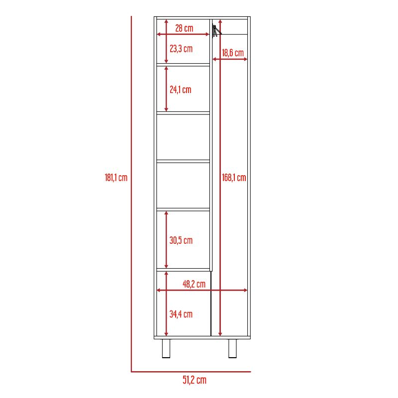 Medidas: 181.1 cm de alto x 51.2 cm de ancho x 36.8 cm de fondo